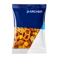 Snack Mix includes: Mini Pretzels, Everything Sticks, Salted Corn Chips with Flax seeds, Honey Roasted Sesame Sticks and Toasted Corn.
